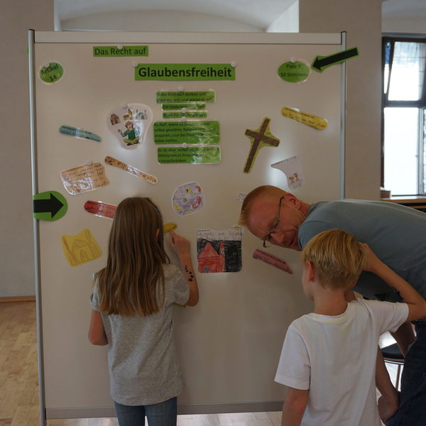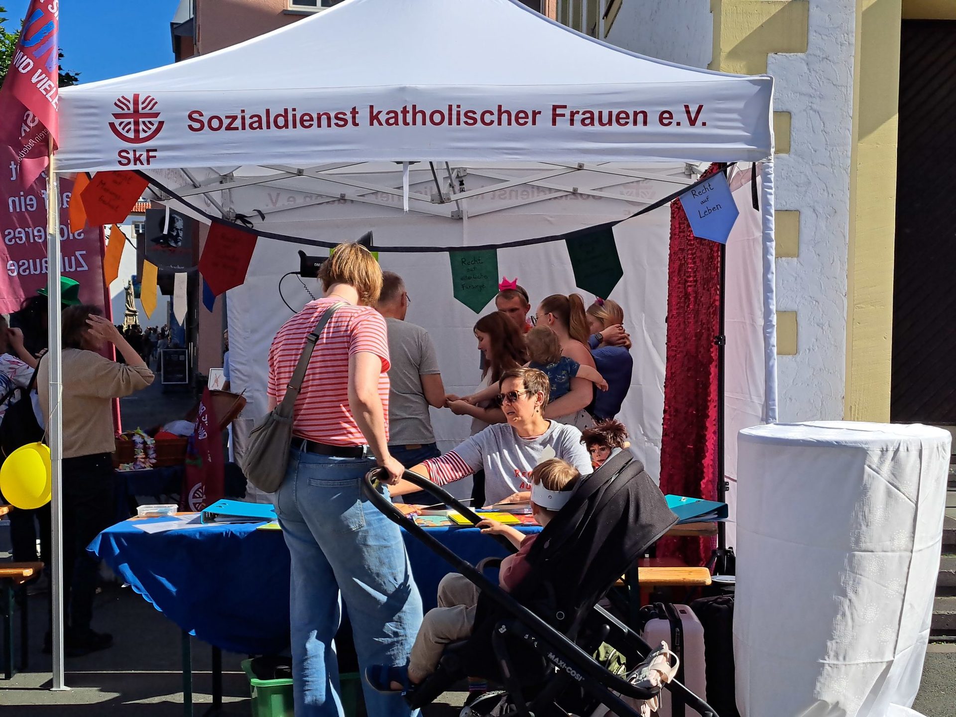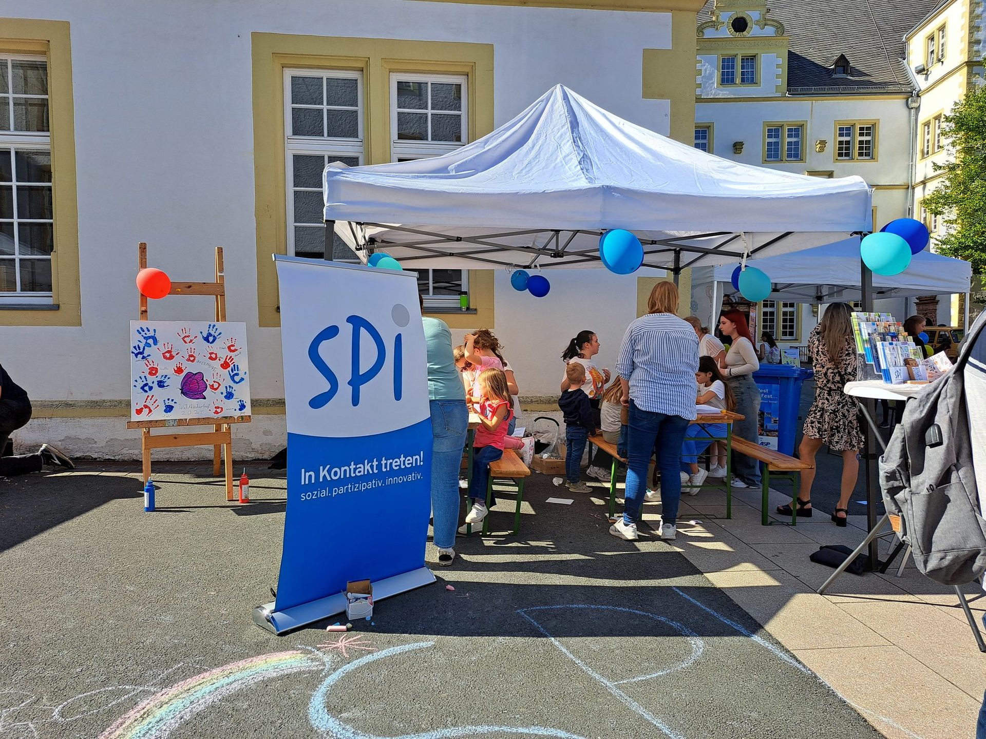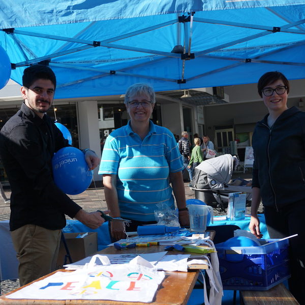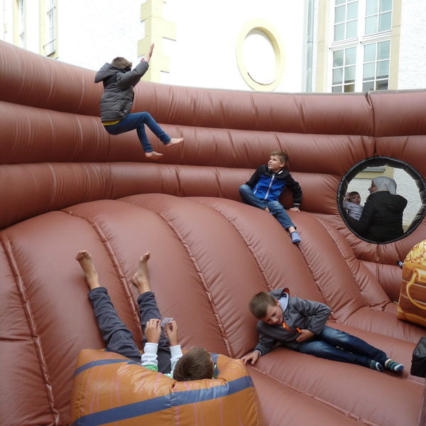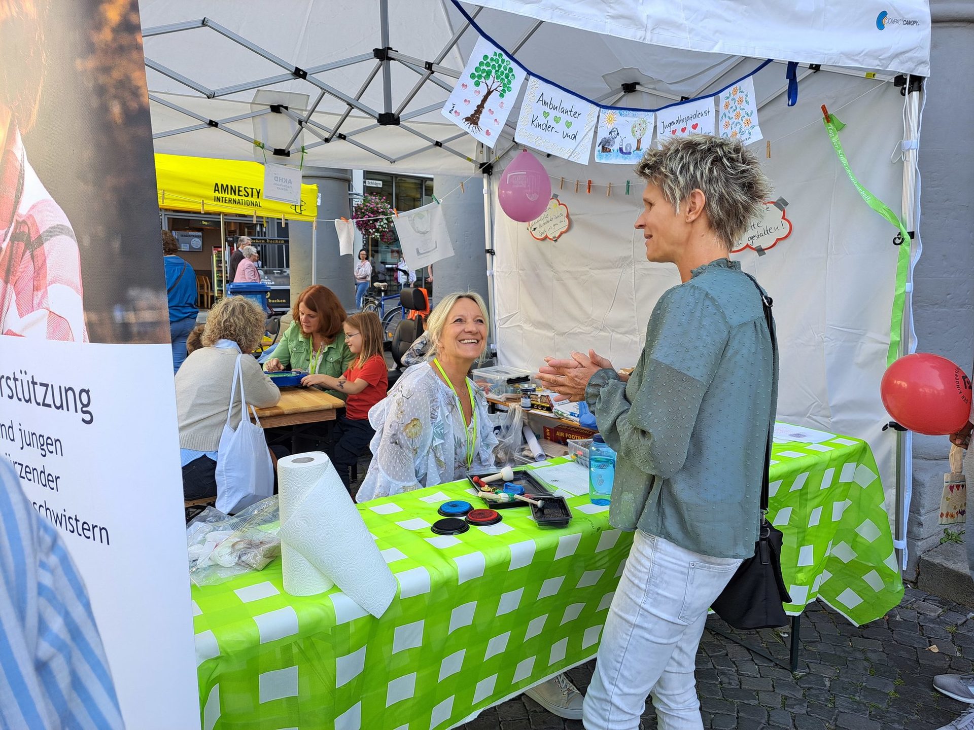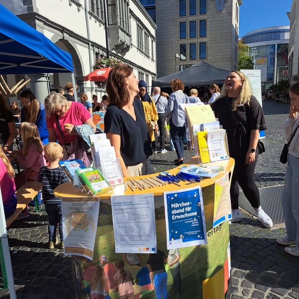 Auch auf dem Rathausplatz sorgten Mal-/ und Bastelangebote für große Begeisterung bei den Kindern. Beispielsweise konnten sie Postkarten mit individuellen Wünschen gestaltet werden, welche an einem Ballon befestigt in die Luft starteten. Zudem konnten sich alle Kinder sportlich, kreativ, handwerklich und spielerisch ausprobieren und sich über ihre Rechte informieren.