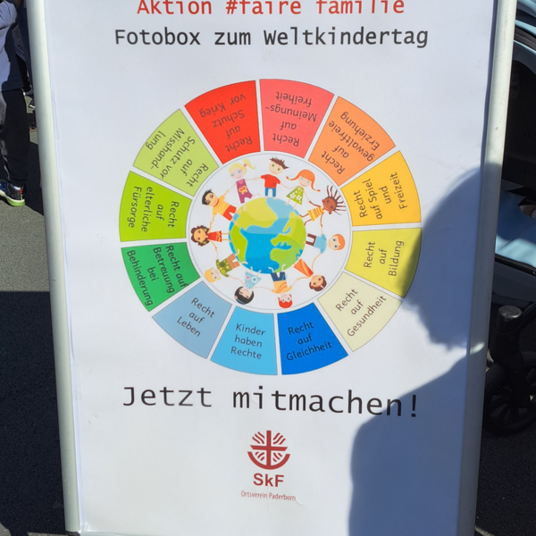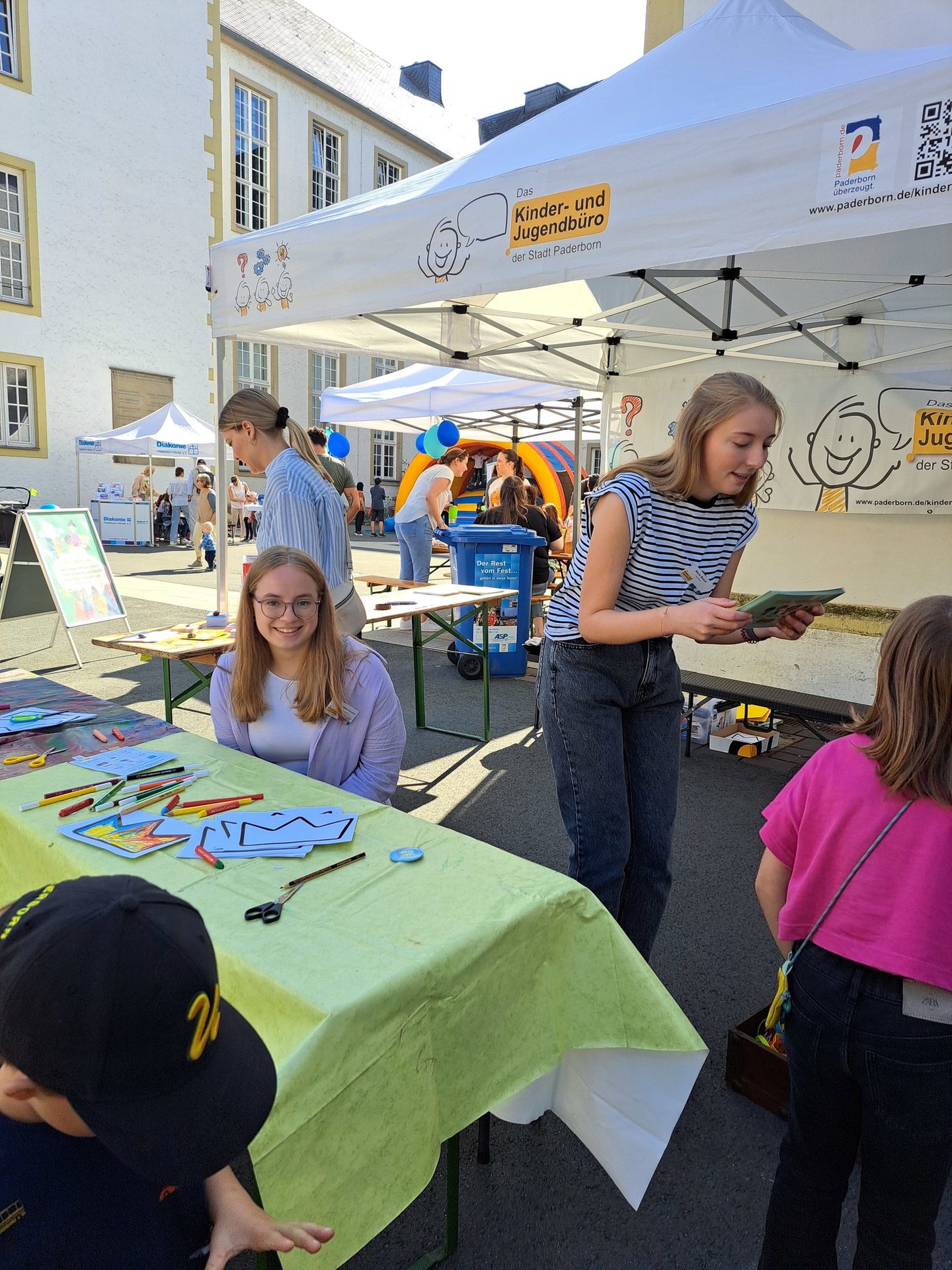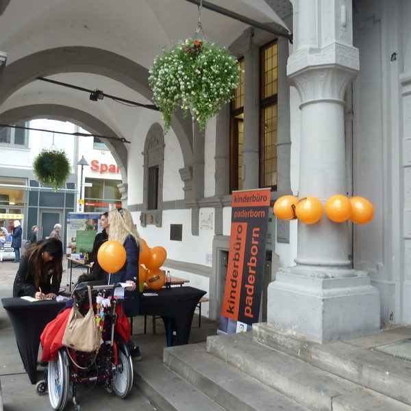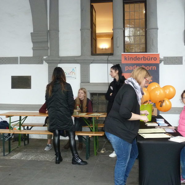Das Kinderbüro bedankt sich bei allen Institutionen und Helferinnen und Helfern, die am Weltkindertag mitgewirkt haben: Amnesty International, Autismus OWL e.V., Beratungshaus Inklusion, Broadwood, BUND Paderborn, Caritasverband Paderborn e.V.: Integrationsagentur und Erziehungsberatungsstelle, Der Paritätische-Kreisgruppe Paderborn, Deutscher Kinderschutzbund KVPB, Familienhebammen/Kinderkrankenschwester Stadt Paderborn, FamilienServiceCenter, Familienunterstützender Dienst Paderborn, Fools Unlimited - Verein für Zirkuskunst e.V., Frauenhaus Paderborn e.V., FreiesBeratungsZentrum Paderborn e.V., In Via Akademie, Kath. und städt. Kindertageseinrichtungen, Pflegekinderdienst Stadt Paderborn, Pollux by Cineplex, SC Grün Weiß PB, Stroke Families, UNICEF AG Paderborn.