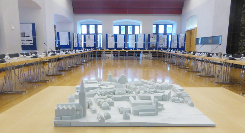 Für die Präsentation unserer Ergebnisse können wir verschiedene Medien auswählen. Digitale 3D Visualisierungen können z.B. als Video ausgegeben werden. Ein farbiger 3D Druck ist ebenfalls möglich und zeigt die Vielfalt der Ausgabemedien.