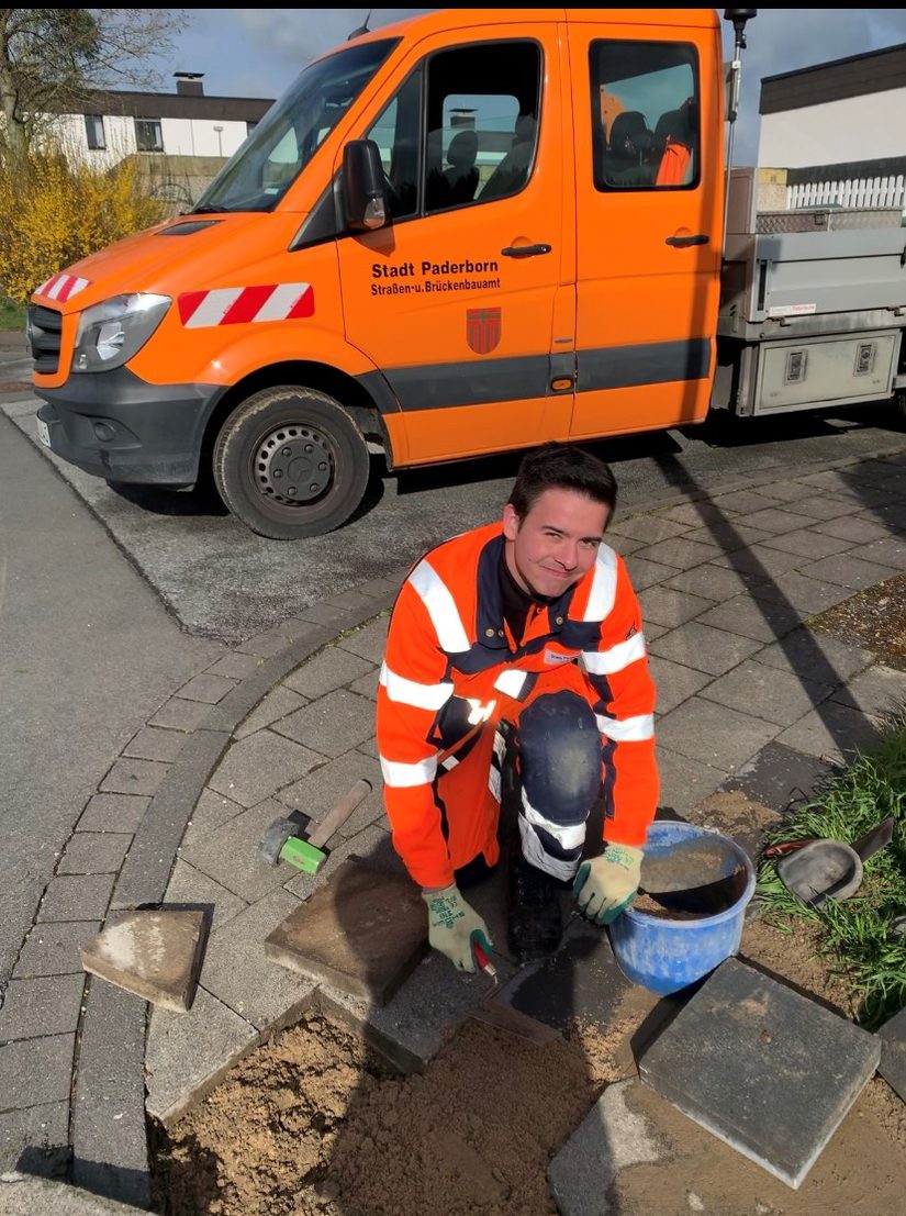 Meine Bewerbung hatte Erfolg und so begann ich im Spätsommer 2020 meine Ausbildung als Straßenwärter im Straßen- und Brückenbauamt der Stadt Paderborn.