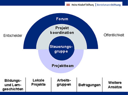 Die folgende Struktur verdeutlicht die Beteiligung aller Akteure im Modellprojekt Kind & Ko während der Projektphase und gibt einen Überblick für ein kommunales Netzwerk. Bis heute haben sich die zentralen Ziele nicht verändert, jedoch haben sich die Themenschwerpunkte erweitert und Zusammensetzungen verändert.