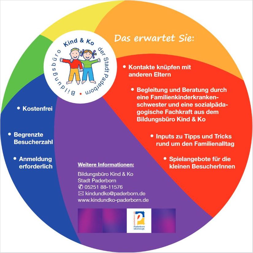 Das Kindercafé Kind & Ko wird von einer Familienkinderkrankenschwester der Stadt Paderborn und einer sozialpädagogischen Fachkraft aus dem Bildungsbüro Kind & Ko begleitet. Interessierte Eltern können sich über das unten stehende Anmeldeformular für einen oder mehrere Termine anmelden.