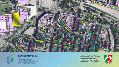 Im kostenlosen Solarkataster vom Land NRW kann eine erste Einschätzung für eine Photovoltaikanlage oder Solarthermieanlage auf einer Dach- oder Freifläche eingeholt werden.