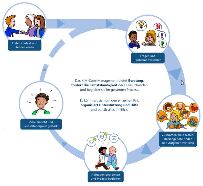 Das Kommunale Integrationsmanagement (KIM) ist ein Förderprogramm des Ministeriums für Kinder, Jugend, Familie, Gleichstellung, Flucht und Integration des Landes NRW. Ziel ist, die Teilhabemöglichkeiten und Chancen von Menschen mit Einwanderungsgeschichte zu verbessern.
