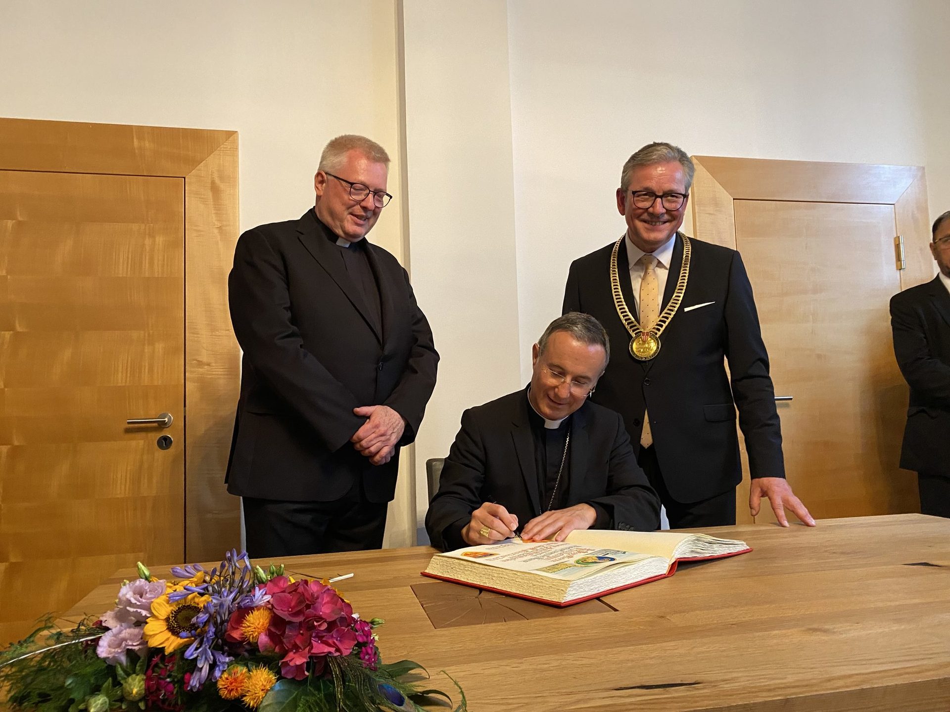 Neuer Manceller Bischof trug sich ins Goldene Buch der Stadt ein