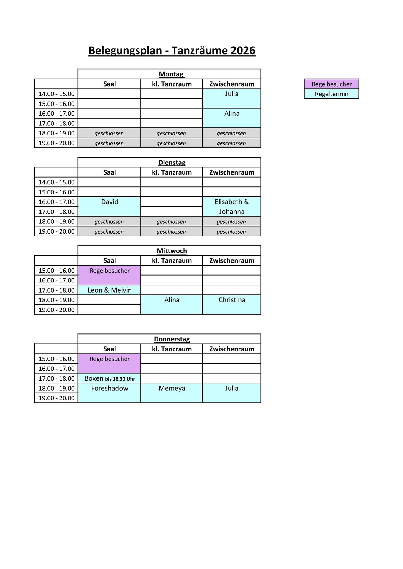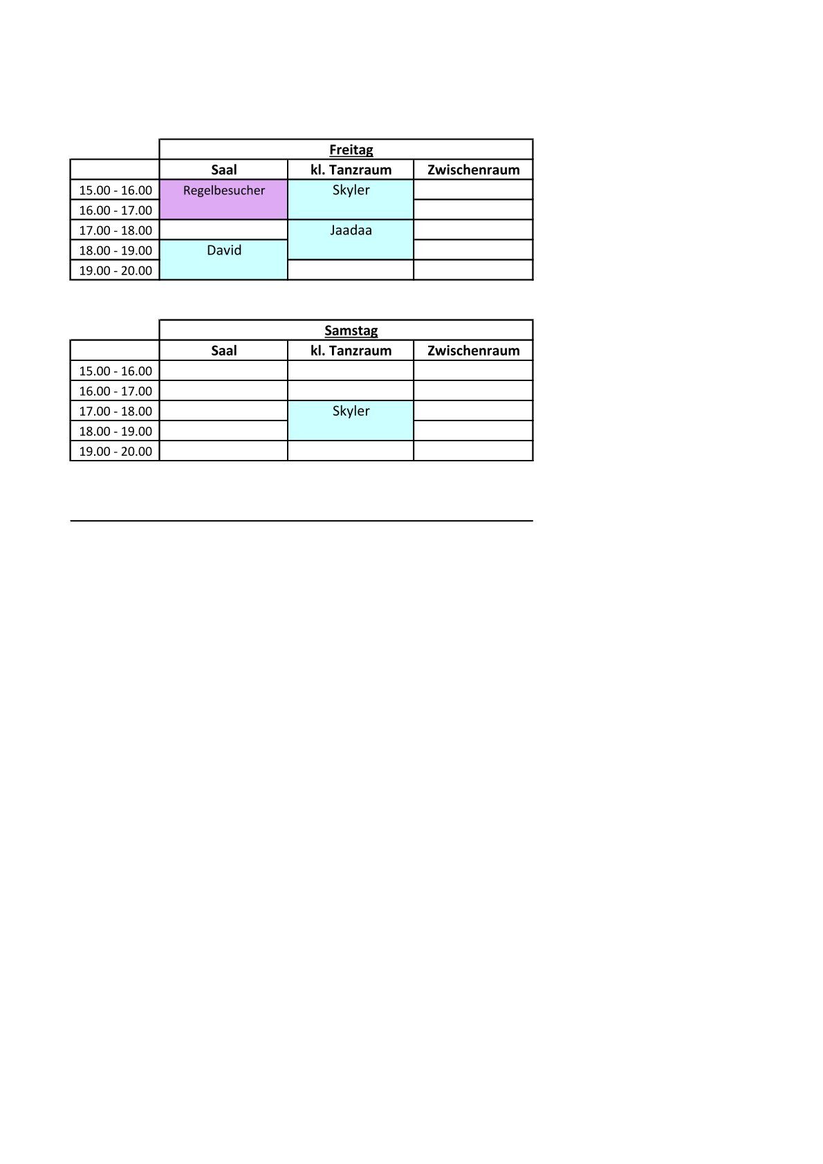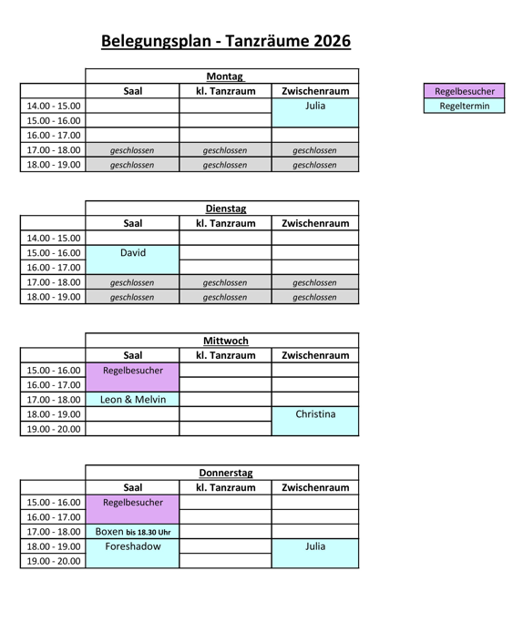Belegungspläne Tanz & Musik