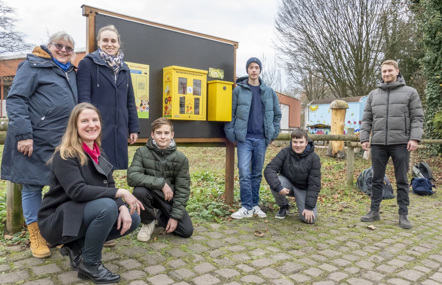 Die Vorweihnachtszeit ist eine besinnliche Zeit. Wichtel sind stille Boten dieser geheimnisvollen Wochen. So ist ganz unbemerkt der Bienen-Wichtel in den Bienenfutterautomaten des Naturkundemuseums Paderborn eingezogen. Dort hat er sogar gleich vier kleine Zimmer in denen er sich häuslich eingerichtet hat. Das ist auch der Bienen-AG der Realschule Schloß Neuhaus nicht entgangen, die den Bienen-Wichtel schon besucht hat. Die Bienen-AG ist Teil eines gemeinsamen Bienen-Projektes der Realschule Schloß Neuhaus und des Naturkundemuseums.