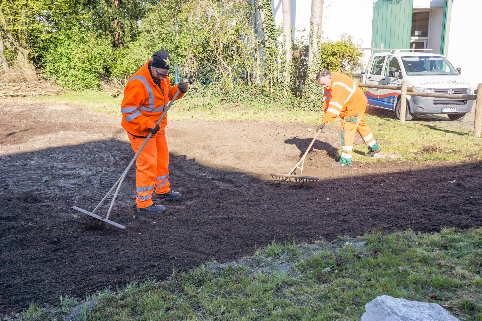 Dr. Sven Mecke und Dagmar Gorny vom Naturkundemuseum lassen eine wilde Wiese für Schmetterlinge anlegen, Totholz aufschichten und Insektenquartiere aufstellen. Sie engagieren sich damit für den Naturschutz und werden die umgestaltete Fläche am Museum für die Kulturlandschaftsvermittlung nutzen. Angelegt und bearbeitet wird die Wiese vom Amt für Umweltschutz und Grünflächen. Das regionale Saatgut wurde von der Naturschutz-Stiftung Senne und dem Kreis Paderborn zur Verfügung gestellt.