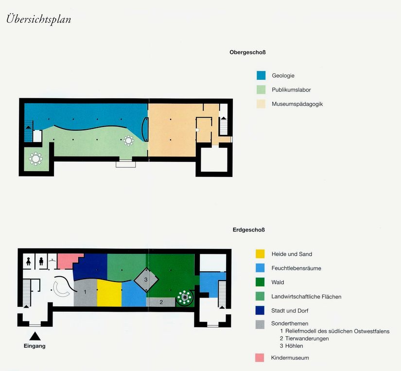 Die Lebensräume Wald, Heide, Feuchtlebensräume, Landwirtschaftsflächen und Dorf- und Stadtbereiche werden mit Präparaten von jeweils typischen Tierarten vorgestellt. Aquarien und ein Beobachtungsbienenstock laden zum Entdecken ein. Es gibt viele Möglichkeiten, selbst aktiv zu werden, z.B. hört man auf Knopfdruck Stimmen verschiedener Tiere, einige Exponate dürfen angefasst werden, andere können mit Hilfe von Lupen oder Mikroskopen aus ganz ungewohnter Nähe betrachtet werden und an vielen Stellen gibt es für Neugierige Verborgenes zu entdecken.