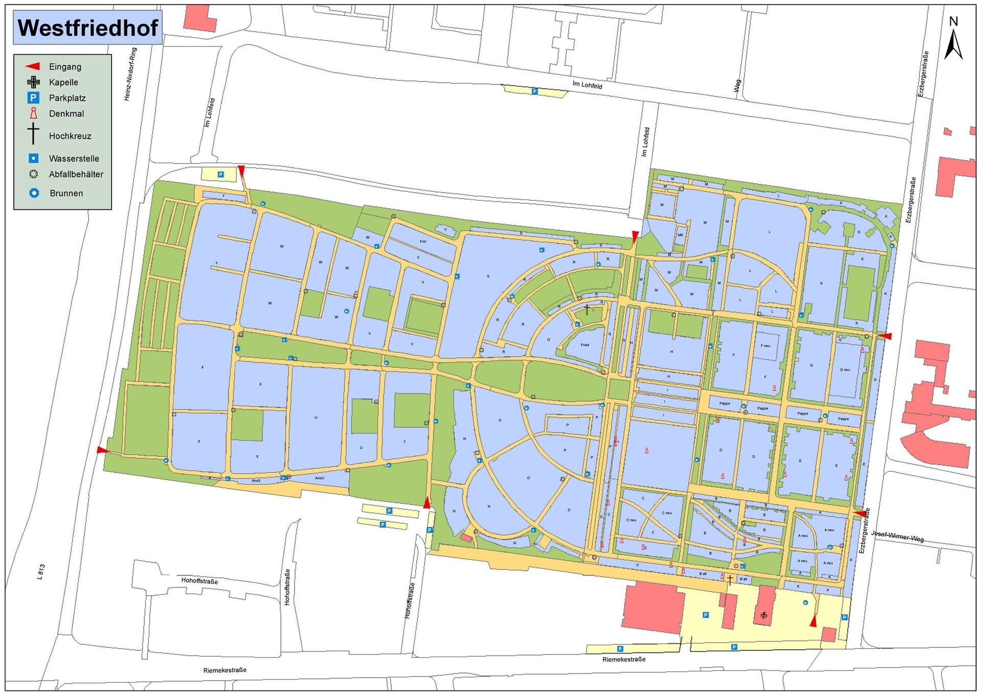 Hier finden Sie umfangreiche Informationen, einen Übersichts-Plan und die Kontaktdaten und Ansprechpartner des Westfriedhofs