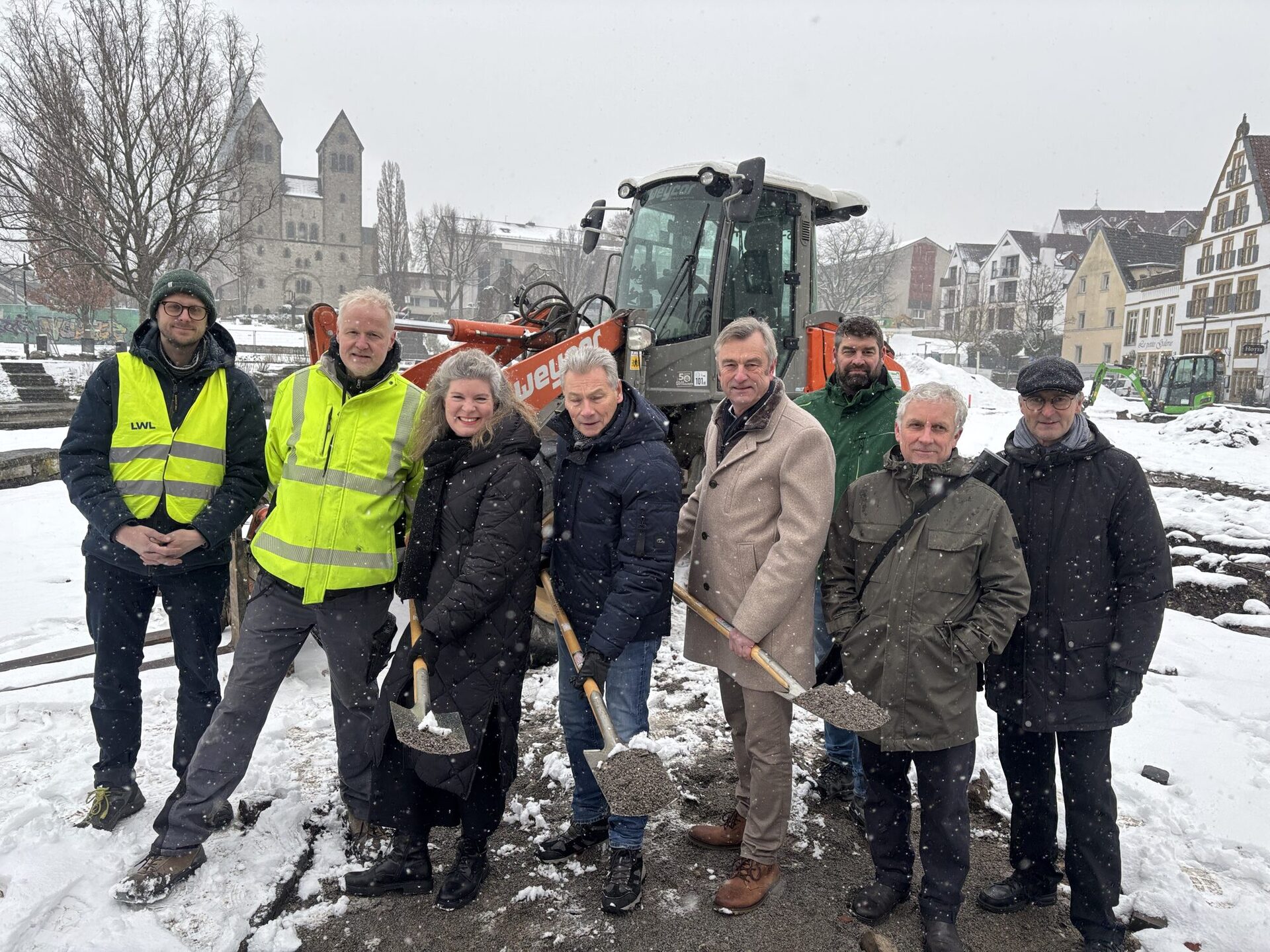 Nachdem im letzten Jahr die vorbereitenden Arbeiten zur Wiederherstellung des Gartendenkmals in Paderborn angelaufen sind, haben jetzt auch die eigentlichen Arbeiten in diesem Bereich begonnen. Zusammen mit dem stellvertretendem Bürgermeister Robert Siemensmeyer, der Amtsleitung des Amtes für Umweltschutz und Grünflächen Jessica Schütte sowie Dietrich Honervogt, Vorsitzender der Freunde der Pader e.V., erfolgte nun der erste Spatenstich.