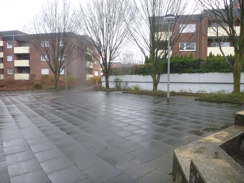 Die fußläufige Platzfläche mit den Wegeverbindungen und Parkplatz im Bereich des Wohn- und Geschäftshaus am Lichtenturmweg ist in die Jahre gekommen und weist einige Defizite auf. Dazu gehören die defekte Brunnenanlage, unvollständige, veraltete Pflanzflächen und nicht mehr zeitgemäße Ausstattungselemente.