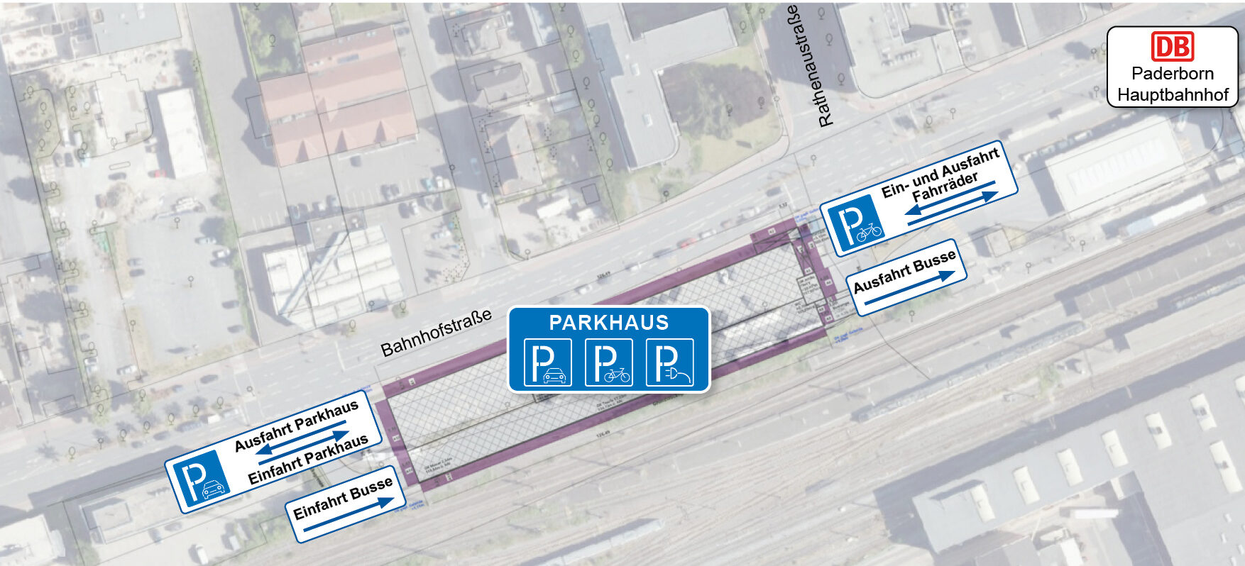 © ASPLageplan: Wenige Schritte vom Paderborner Hauptbahnhof entfernt baut der ASP ein modernes Parkhaus für Pkw und Fahrräder.