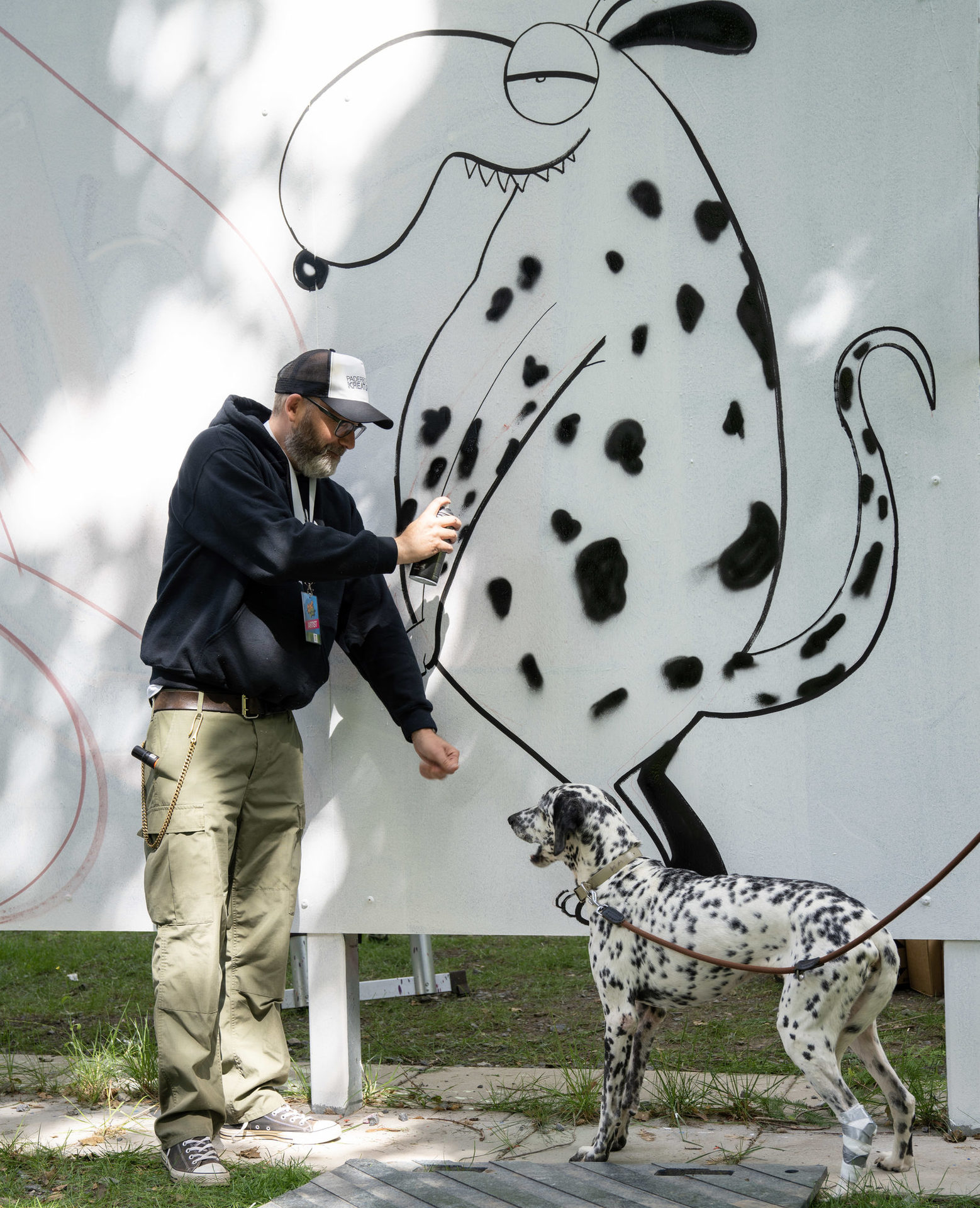 Am 26. September feierten wir den offiziellen Abschluss der Fassadengestaltung vor der Stadtbibliothek. Während Chris Campe in der Stadtbibliothek noch eine Wand gestaltete, konnte draußen in einer Bauzaunbannerausstellung die entstanden Fassaden aus dem Jahr 2022 begutachtet werden, dazu konnte man Sven Niemann bei einer Führung beiwohnen.