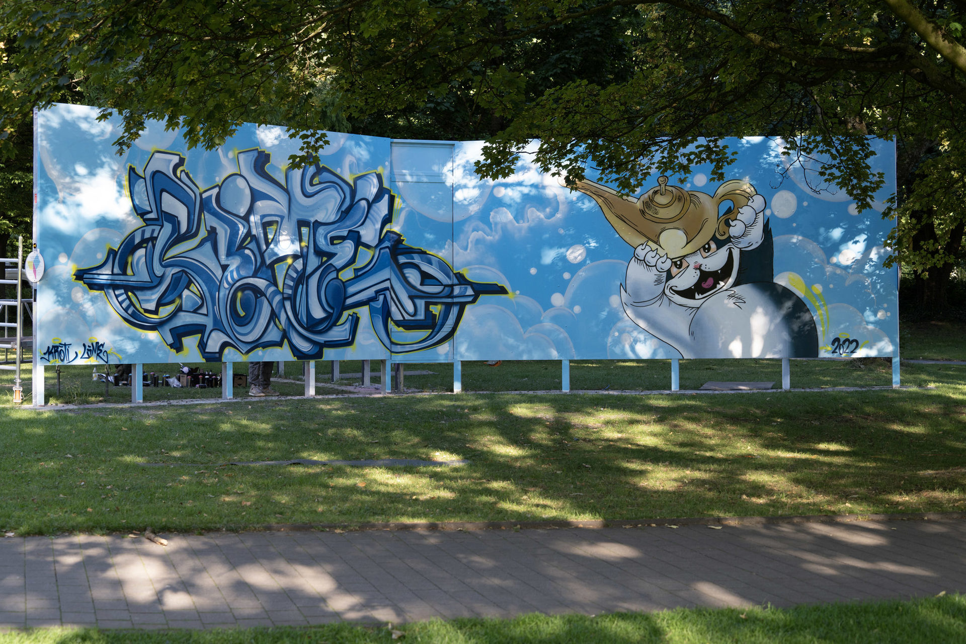 Am 06.08.2022 fand die Eröffnung am Graffiti-Stern in den Paderwiesen statt. In der Zeit von 10:00 - 18:00 Uhr gestalteten die Künstler und Künstlerinnen Kröti88, lime, Ka$h, Herman, Pumba, Rics, Wilda, Katrin Lazaruk und André Sedlaczek den Graffiti-Stern, das WC-Häuschen und das Pumpenhäuschen.