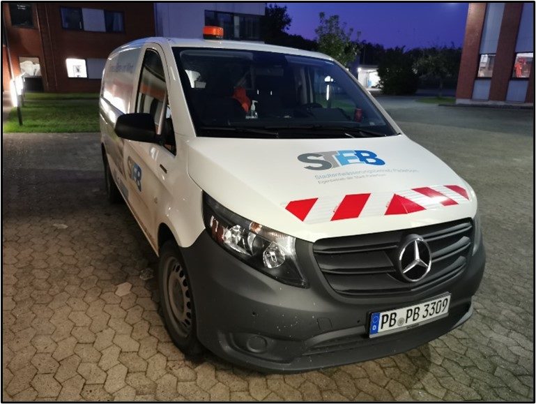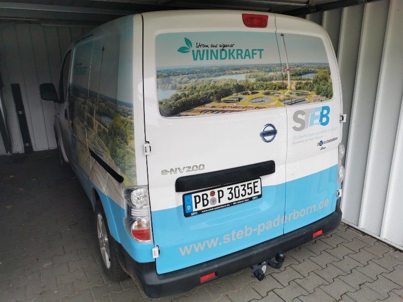 Eine der Leitlinien des STEB befasst sich mit dem Einsatz besonders umwelt- und ressourcenschonenden Verfahren, Materialien und Arbeitsmittel. Aus diesem Grund soll die Fahrzeugflotte des STEB, dort wo es sinnvoll ist, auf E-Mobile umgestellt werden. Da die Kläranlage im Jahresdurchschnitt einen Überschuss an elektrischer Energie erzeugt, können E-Fahrzeuge zudem auch unter ökonomischen Gesichtspunkten betrieben (geladen) werden.
