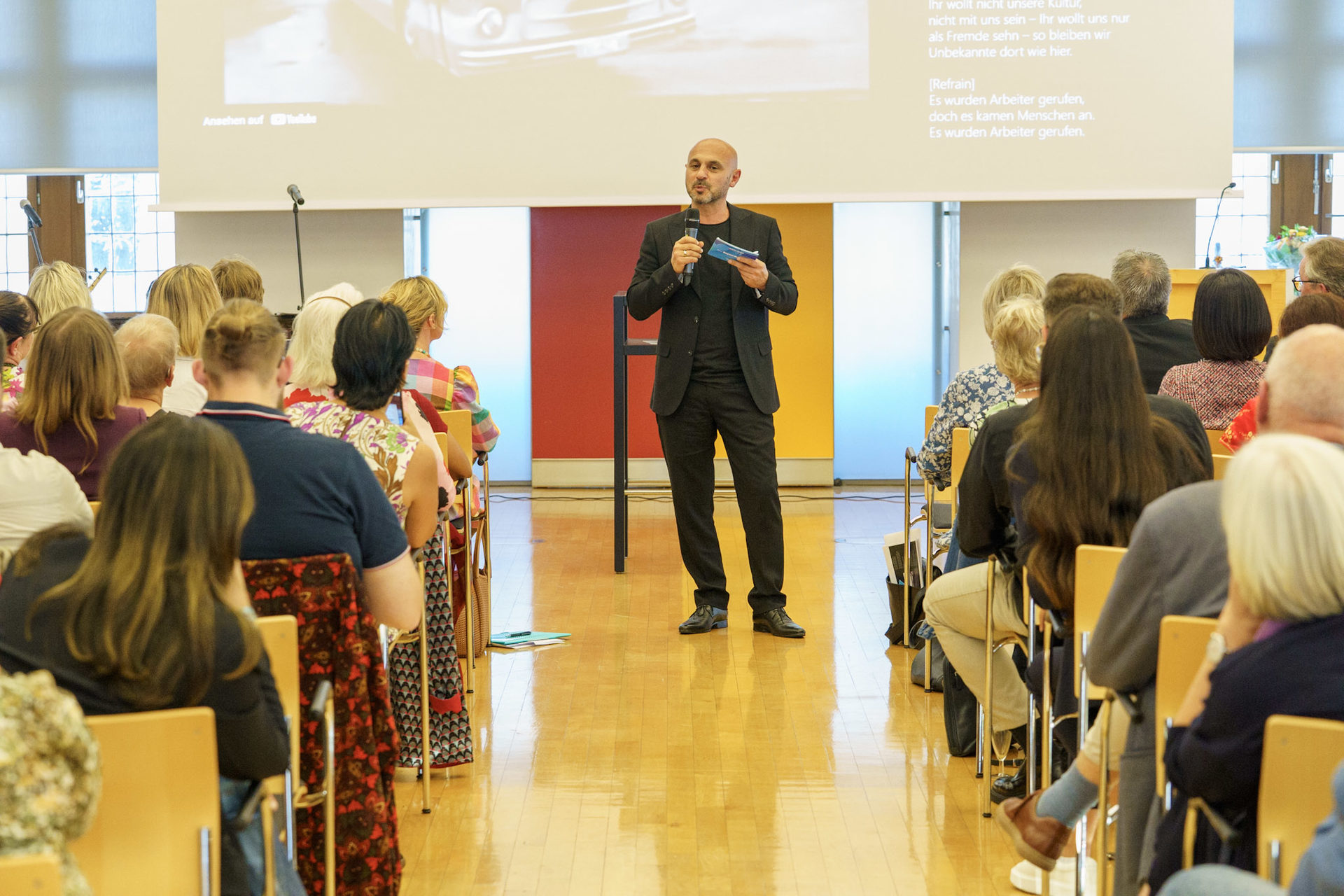 Als Festredner war Ragip Aydin geladen. Der Gründer und CEO von „Raynet“ hatte eine Präsentation vorbereitet. Neben seiner eigenen Geschichte als Kind türkischer Gastarbeiter sprach er auch zum Thema Integration im Allgemeinen. Besonders hob er dabei hervor, dass Integration ein beidseitiger Prozess sein müsse, der Menschen zusammenbringt. Das geschehe durch die Arbeit des ausgezeichneten Chors, der mit Musik etwas Verbindendes schaffe.