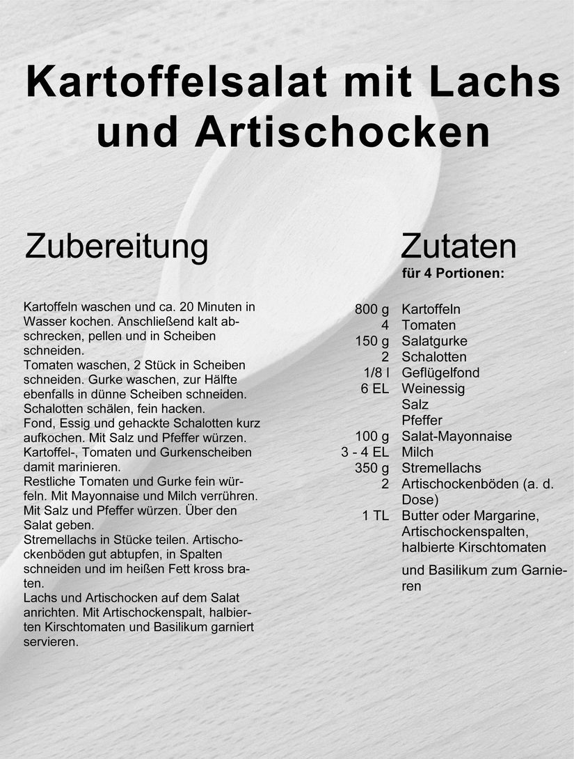 Sie befinden sich hier:StartseiteRezepteSommerrezepteKartoffelsalat mit Lachs und Artischocken Kartoffelsalat mit Lachs und Artischocken Rezept für vier Personen. © Stadt Paderborn