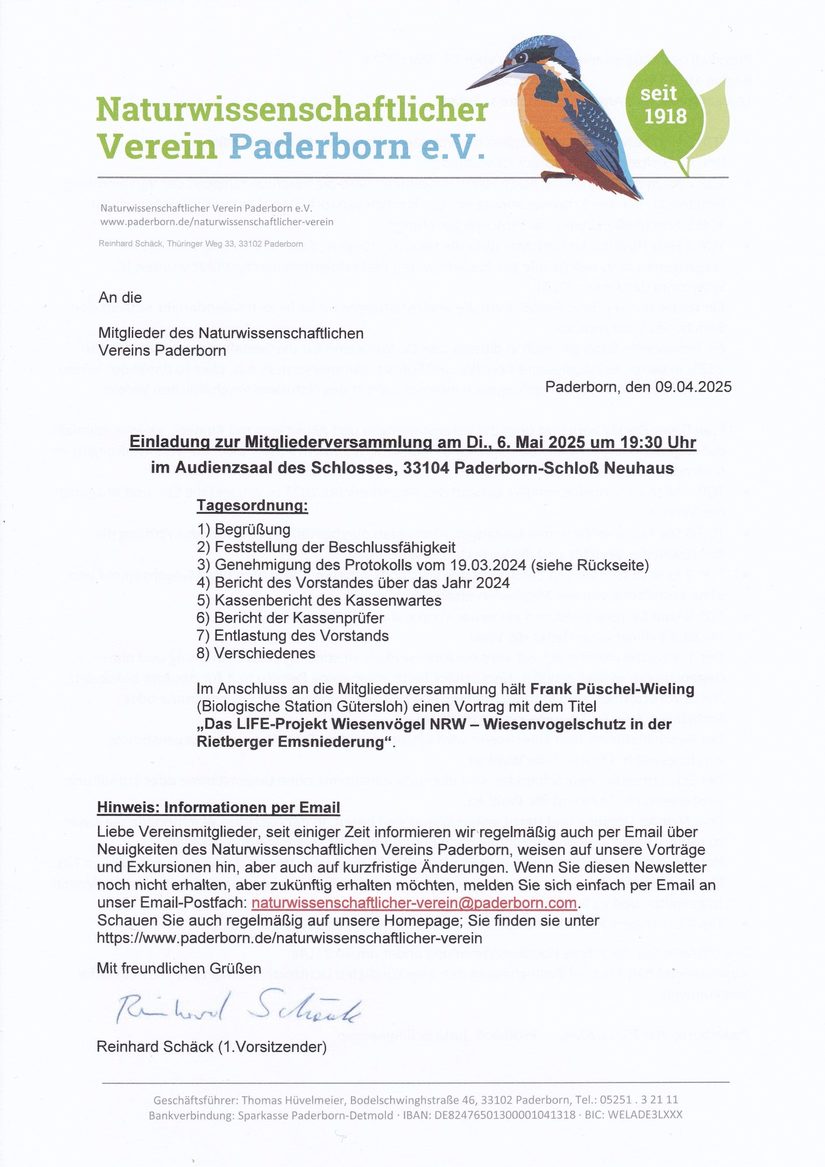 Auf der Seite Veranstaltungen des Naturwissenschaftlichen Vereins Paderborn werden die Veranstaltungen ebenfalls angekündigt werden.