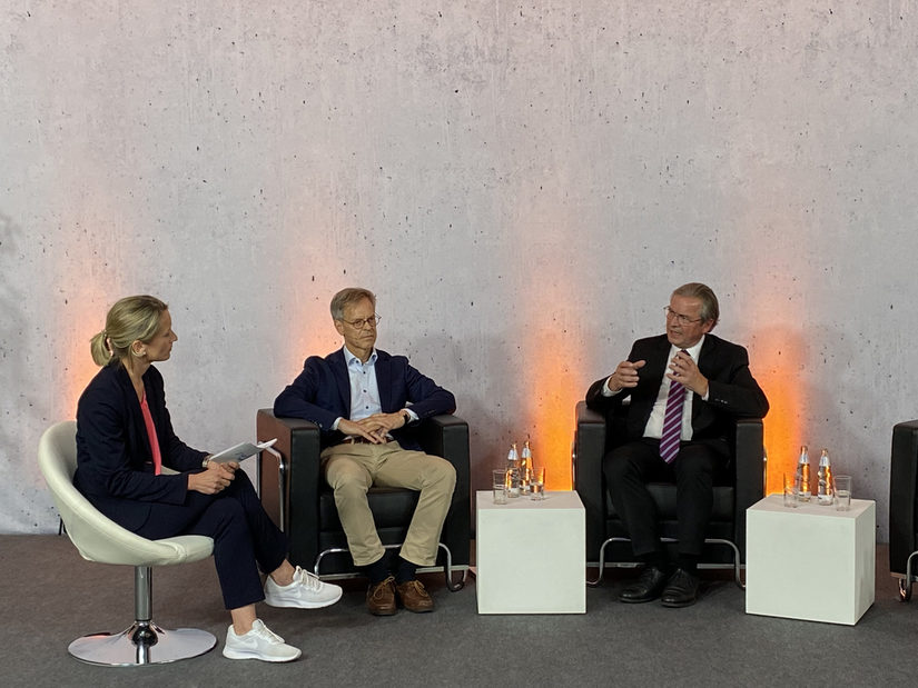 An der anschließenden Diskussionsrunde nahmen Professor Günter Wilhelms sowie die Mitglieder des Ethikrats Professor Andreas Fisahn, Professor Reinhard Keil und Detlev Schubert teil. Zunächst erläuterte Professor Keil, warum Digitalisierung überhaupt eine Herausforderung darstellt. Ein relevanter Aspekt ist aus seiner Sicht die stetige Veränderung: „Wenn wir über Digitalisierung reden, reden wir eigentlich über einen komplexen, kontinuierlichen Lernprozess und über Interessenskonflikte.“ Aus unterschiedlichen Blickwinkeln diskutierten die Teilnehmenden die Rolle der Ethik und Lösungsansätze – von Sensibilisierung, stetiger Kommunikation bis hin zu konkreten Handlungsempfehlungen. Während Detlev Schubert in seinen Ausführungen beispielsweise vor allem auf das Thema Schule und Bildung einging, erläuterte Professor Fisahn mögliche Lösungen aus seiner juristischen Perspektive und verdeutlichte mitunter den Schutz der persönlichen Daten. Ein relevanter Aspekt der Diskussion war das Thema Freiheit: „Wir leben in einer Gesellschaft, die Freiheit ganz großschreibt, bauen aber eine Gesellschaft, die Bedingungen schafft, in der das, was Freiheit eigentlich bedeutet – also zu wissen, was man tut – immer unwahrscheinlicher wird. Das ist ein riesiges Dilemma. Umso wichtiger werden Ordnungsfragen, Recht und Regeln, denen wir auch vertrauen können. Wir haben eine große Aufgabe vor uns“, so Professor Wilhelms.