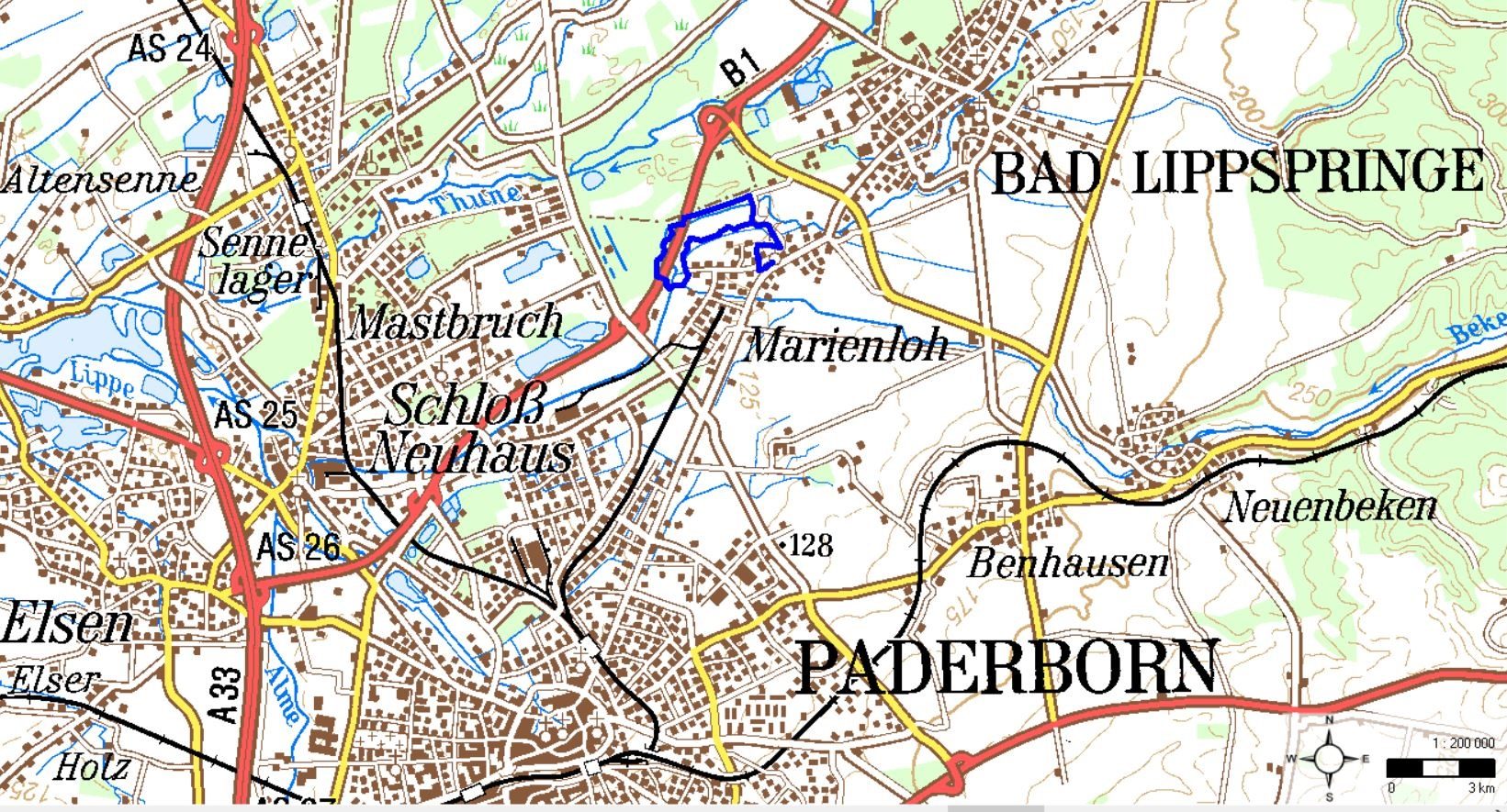 Niedrigster Punkt: 119 m NN (Beke-Lippe-Zusammenfluss)
