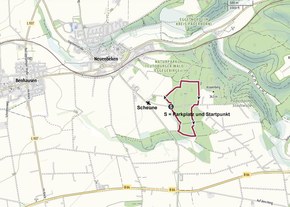 Start/Ziel: Paderborn-Neuenbeken, Parkplatz "Hasenhohl"