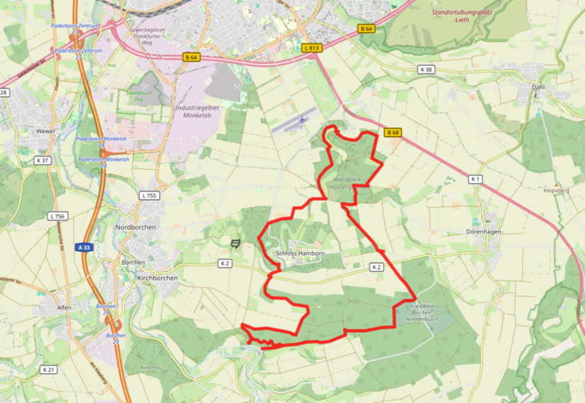 Start/Ziel: Paderborn, Haxtergrund (alternativ: Borchen, Schloß Hamborn)