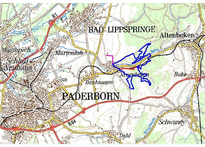 Niedrigster Punkt: 169 m üb. NN (Bekebrücke Neuenbeken)
