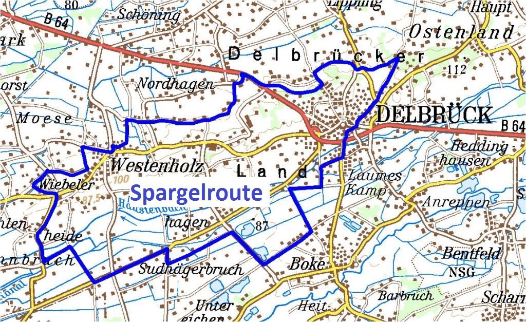 Detaillierte Radwanderkarten zur Delbrücker Spargelroute gibt es nicht.
