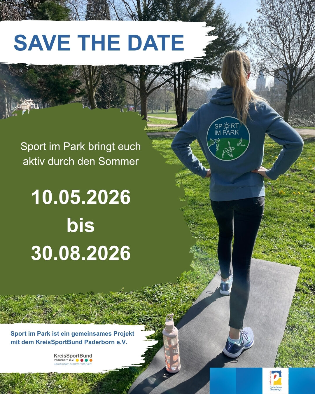 Sport im Park bringt die Paderborner Bevölkerung ganz unverbindlich, kostenfrei und unter qualifizierter Anleitung in Bewegung. Kommen Sie vorbei und trainieren Sie gemeinsam mit uns in der Natur!
