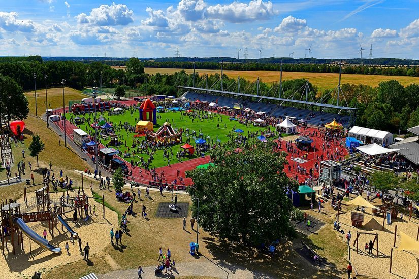 Spiel und Spaß bei hoffentlich strahlendem Sonnenschein. Tausende Besucher werden im Ahorn-Sportpark erwartet um das Ende der Sommerferien zu feiern.