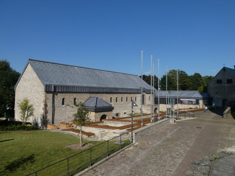 Der Königssaal der einstigen karolingischen Pfalz wurde nicht wieder aufgebaut. Die von Archäologen freigelegten Mauerreste hat man an der Oberkante begradigt, um die Zersetzung durch Witterungseinflüsse zu verhindern. Ursprüngliches Mauerwerk ist dabei von ergänzten Partien durch flache Tonziegel optisch getrennt.