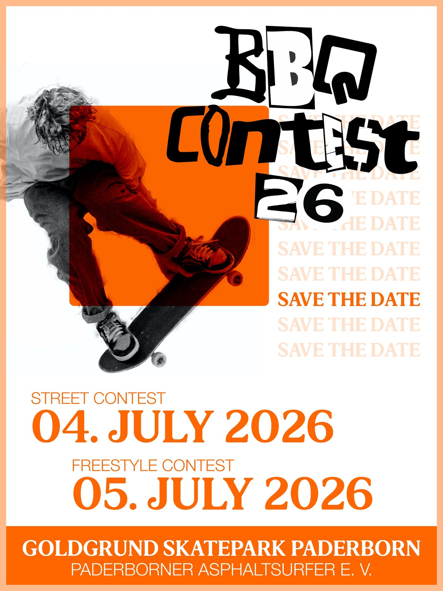 Der legendäre BBQ Skateboarding Contest geht 2026 in die 27. Runde. Seit vielen Jahren ist die Veranstaltung der Paderborner Asphaltsurfer e. V. ein fester Termin im Skateboard-Kalender der Region und lockt Teilnehmende sowie Besucherinnen und Besucher aus ganz Deutschland und darüber hinaus nach Paderborn.