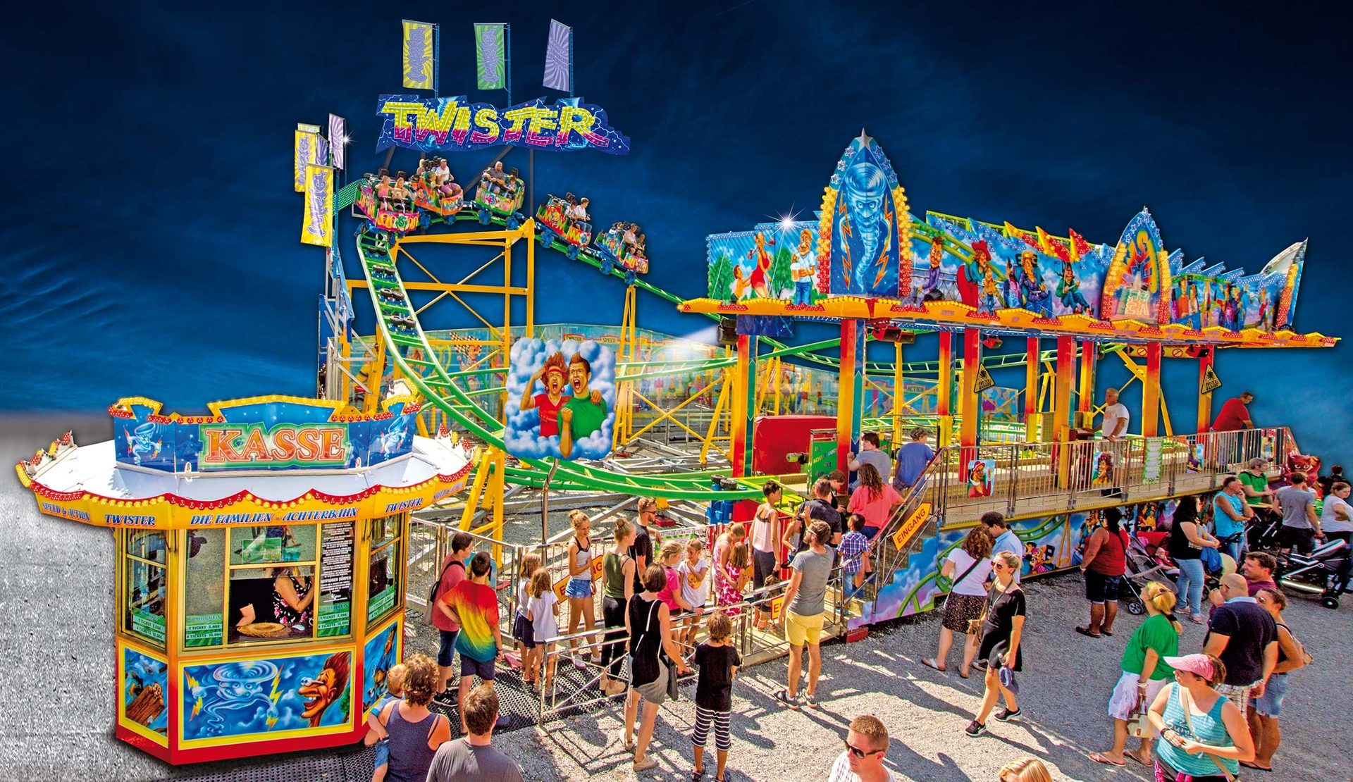 Neben den Klassiker- und Highlightfahrgeschäften stehen zahlreiche weitere Attraktionen, Ausschank, Imbiss und Kinderfahrgeschäfte bereit.