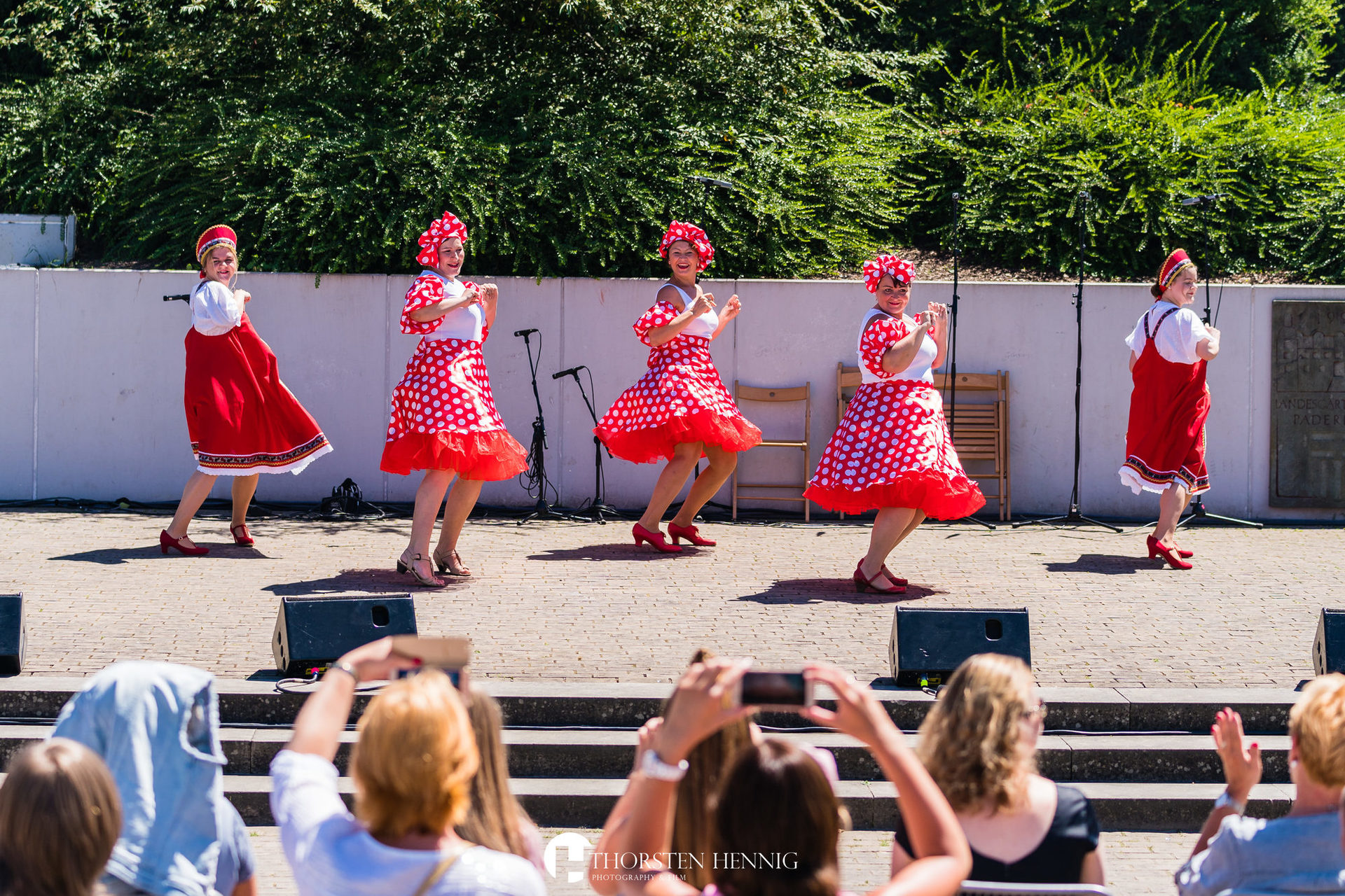 Im Rahmen des Internationalen Festes präsentieren ansässige Vereine und Institutionen verschieden Kulturen. Die Besuchenden können landestypische Speisen und Getränke verkosten. Auf der Bühne vor dem Brunnen werden Musik, Tanz und weitere kulturelle Beiträge geboten. Die Veranstaltung ist eintrittsfrei.