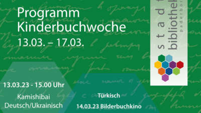 Das Bilderbuchkino richtet sich an Kinder ab 4 Jahren und findet im Rahmen der Paderborner Kinderbuchwoche statt. Für die Teilnahme ist kein Bibliotheksausweis nötig. Um eine Anmeldung wird gebeten.
