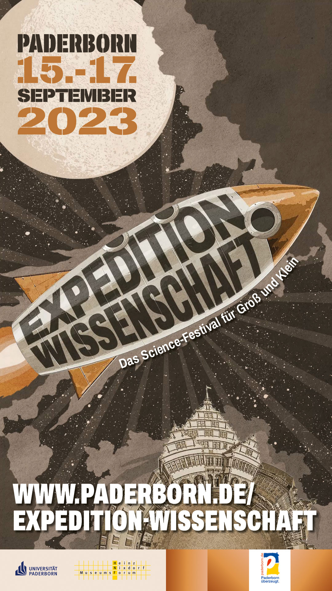 Unter dem Motto „Expedition Wissenschaft“ wird sich die Paderborner Innenstadt vom 15. bis zum 17. September 2023 wieder in ein aufregendes Ideen- und Mitmachlabor verwandeln.