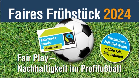 Mit Ausnahme einer kurzen Pause während der Corona-Pandemie lädt die Steuerungsgruppe Faires Paderborn bereits seit 2013 zum Fairen Frühstück in den großen Saal des Historischen Rathauses ein. Jedes Jahr wird das Frühstück dabei mit einem Kurzvortrag zu einem Thema aus dem Bereich des fairen Handels verbunden, sodass Genuss auf nachhaltiges Engagement trifft. Passend zur Fußballeuropameisterschaft der Männer im eigenen Land wird sich dieses Jahr alles um Nachhaltigkeit im Paderborner Profifußball drehen.