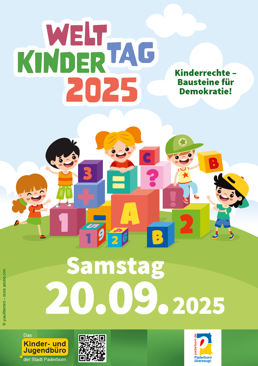 Alle Kinder und Familien sind herzlich eingeladen am 20.09.2025 in der Paderborner Innenstadt den Weltkindertag zu feiern.