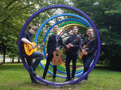 Vier junge Gitarristen von der Technischen Universität Dortmund präsentieren Werke von Barock bis Moderne. Das kontrastreiche Programm führt Sie unter anderem von der Weite Skandinaviens über Wien und Paris bis hin zum Pacific Coast Highway in Kalifornien.