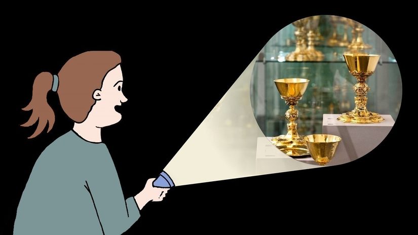 Unter dem Museumsgebäude verbirgt sich ein mittelalterlicher Gewölbekeller, in dem etwas ganz Besonderes aufbewahrt wird: der Schatz des Paderborner Doms. Wir begeben uns hinab und erkunden diesen geheimnisvollen Ort. Im Licht der Taschenlampen entfalten die goldenen und mit Edelsteinen besetzten Gefäße, Figuren und Bischofsstäbe eine ganz besondere Wirkung. Auch der Schrein des heiligen Liborius und seine vielen kunstvoll gearbeiteten Details können hier aus nächster Nähe betrachtet werden.