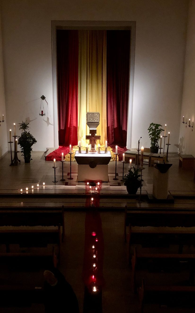 Meditative Gesängen aus Taizé mit geistlichen Texten, die die Bedeutung des Lichtes in dunkler Zeit betrachten, ergänzen das gemeinsame Singen und laden zur Ruhe und zum Gebet ein.