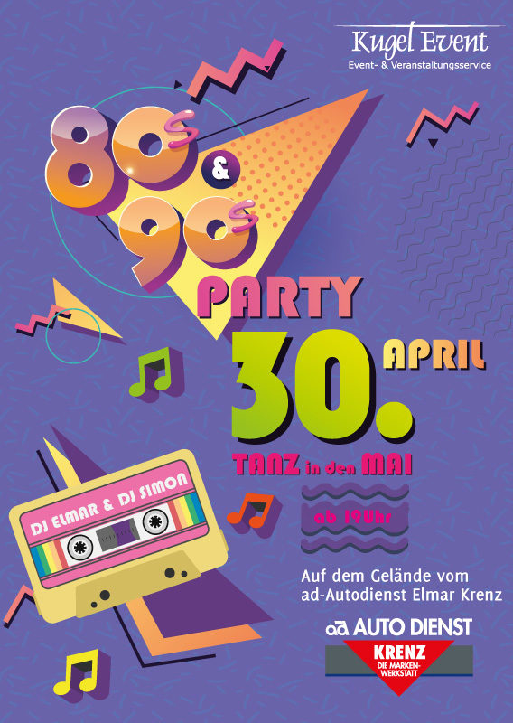 Feiere die ultimative 80's & 90's Party am 30. April und tanze mit uns in den Mai! Wir bringen dich zurück in die Zeit der schrillen Outfits, wilden Frisuren und unvergesslichen Hits.