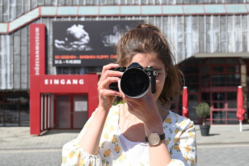 Hierfür besuchen wir zunächst die Ausstellung und machen uns mit den Arbeiten der Künstlerin vertraut. Im Anschluss werden wir im und um das Museum herum selbst fotografisch aktiv: Mittels eines experimentellen „Direkt-Positiv-Verfahrens“ entstehen eigene kleine schwarz-weiße Fotos (meist 24 x 36 mm oder 60 x 60 mm), die anschließend in der Dunkelkammer entwickelt werden.