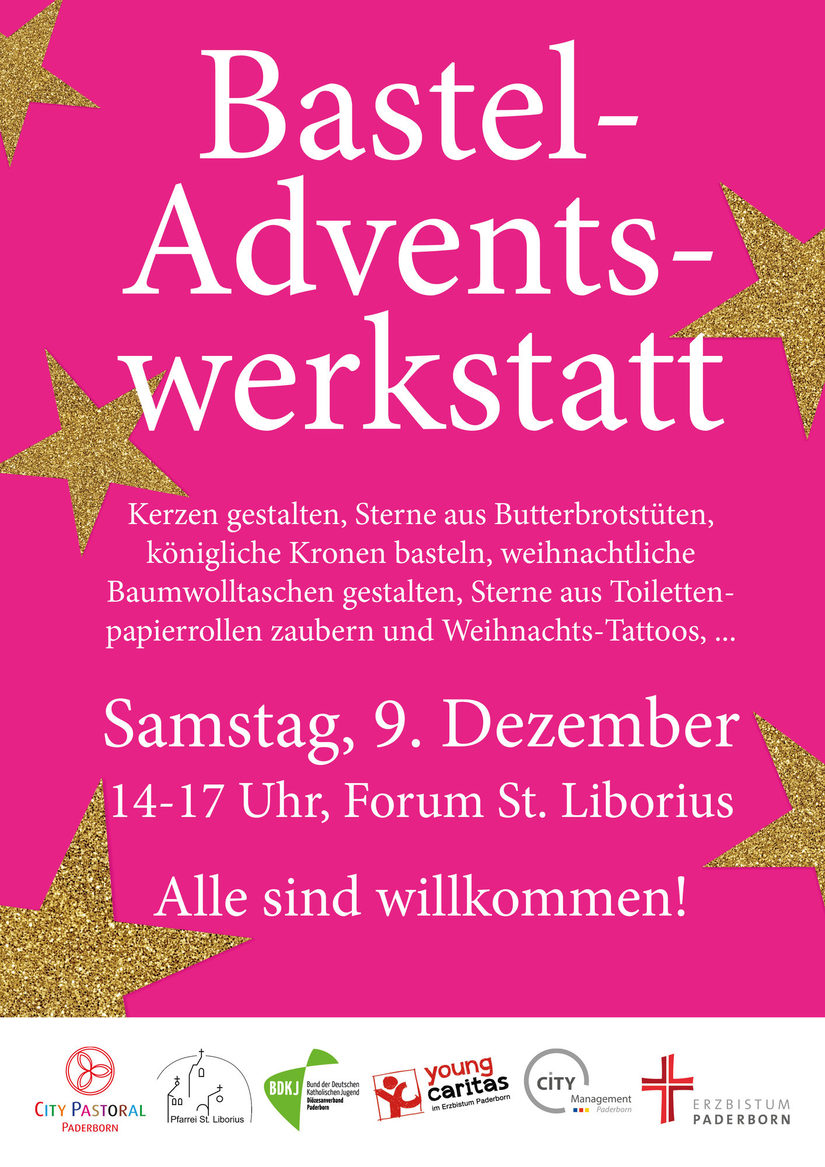 Kerzen gestalten, Sterne aus Butterbrotstüten, königliche Kronen basteln, weihnachtliche Baumwolltaschen gestalten, Sterne aus Toilettenpapierrollen zaubern, Weihnachts-Tattoos, ...