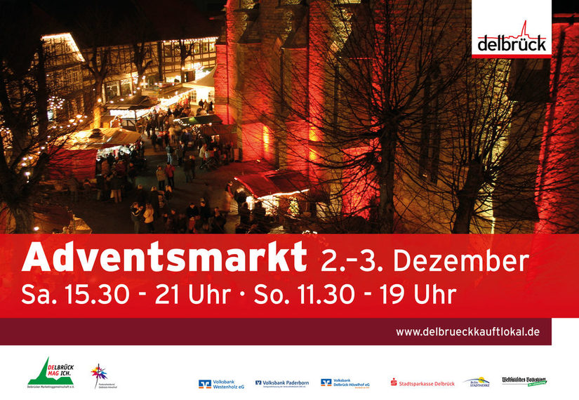 Am Samstag von 15:30 bis 21 Uhr und am Sonntag von 11:30 bis 19 Uhr werden auf dem Kirchplatz dann viele Musik- und Tanzgruppen aus Delbrück und der Region für vorweihnachtliche Atmosphäre sorgen. Gleichzeitig bieten Delbrücker Kaufleute und Organisationen in über dreißig Hütten und an Verkaufsständen ihre Geschenkideen an.