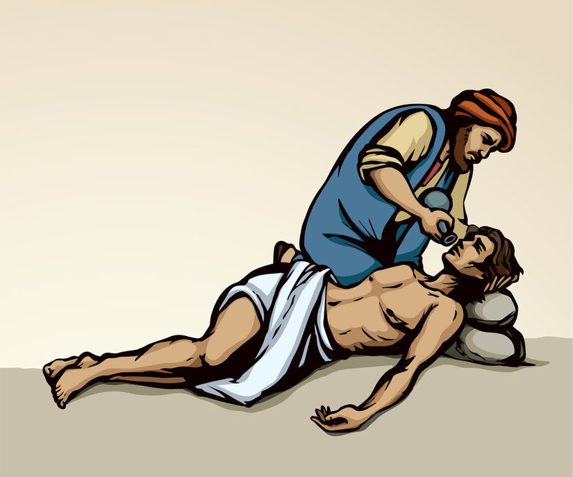 Der barmherzige Samariter in de Augen des Überfallenen
