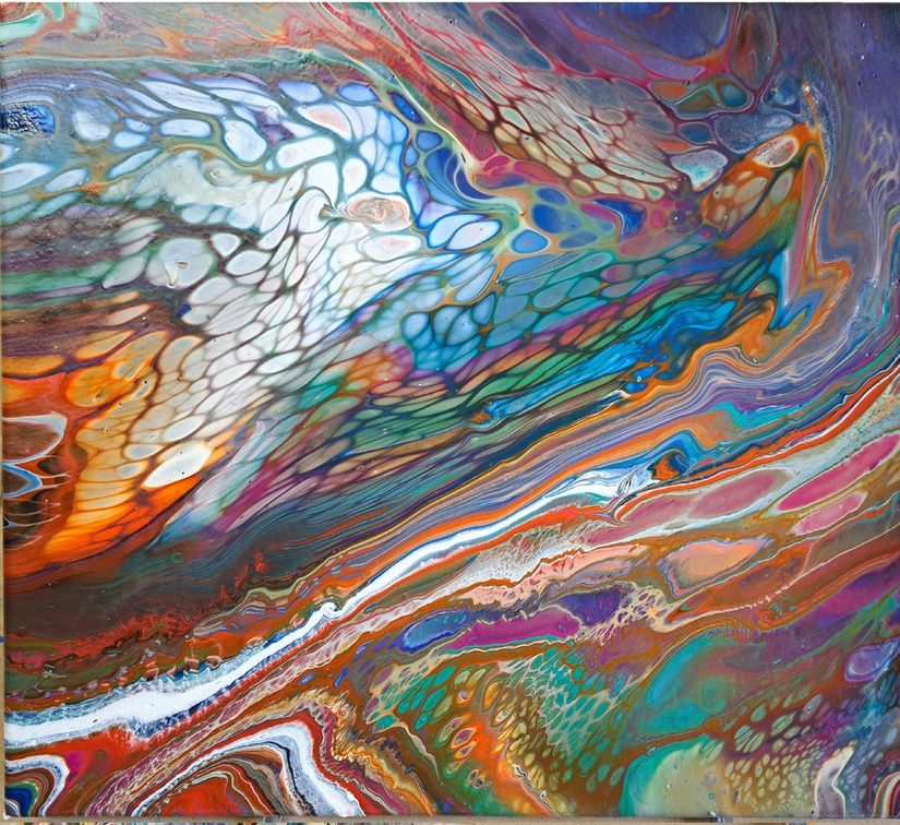 Die Acryl-Pouring-Technik verwendet speziell verdünnte Acrylfarben, die auf eine Leinwand gegossen und durch verschiedene Methoden und Materialien mit- und ineinander gegossen werden, um ein abstraktes Muster zu erzeugen. Diese Techniken ermöglichen es, ohne traditionelle Werkzeuge abstrakte Kunstwerke mit tiefen, komplexen Strukturen zu erschaffen, die jedes Mal einzigartig sind. Die Ergebnisse sind nicht vorhersehbar. Die Besonderheit am Acryl-Pouring: Jedes mit dieser Technik gestaltete Bild kreiert einzigartige abstrakte Muster und Farbverläufe. Somit wird jedes Bild beim Acryl-Pouring zum absolut kreativen Unikat – und das Beste dabei ist: Jeder kann ein solches Bild gestalten.
