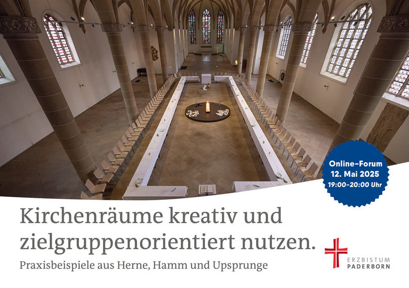 Welche kleinen und großen Umgestaltungen von Kirchen haben sich bewährt, um pastoralen Zielgruppen interessens- und bedarfsgerechte Orte zu eröffnen? Anhand anschaulicher Beispiele aus Herne, Hamm und Upsprunge kommen wir über diese Frage ins Gespräch. Profitieren Sie von den Erkenntnissen anderer Engagierter und bringen auch Sie sich gerne ein! Mit Ihnen im Austausch sind: Annette Breische, Gemeindereferentin im Pastoralverbund Salzkotten mit Blick auf das Projekt „Ostergarten“: begehbare Bibel in der Kirche St. Petrus Joakim Bull, Gemeindereferent in St. Dionysius (Herne) mit Blick auf die Umgestaltung von St. Marien zu einer Kinderkirche Bernd Mönkebüscher, Pfarrer an St. Agnes (Hamm) mit Blick auf die liturgische Gestaltung des Kirchenraums zur Gründonnerstagsfeier und den Einbau eines Ganzkörpertaufbecken Maximilian Schultes, Referent in der Abteilung Glauben im Dialog, Erzbischöfliches Generalvikariat Paderborn ZIELGRUPPE Das Online-Forum richtet sich an ehrenamtlich und hauptamtlich Engagierte in kirchlichen Arbeitsfeldern sowie am Thema interessierte Menschen. ZEITPLAN ab 18:45 Uhr: Möglichkeit zum Technik-Check 19:00 Uhr - 20:00 Uhr: Online-Forum ANMELDUNG Anmeldeschluss: 12. Mai 2025, 12:00 Uhr www.liborianum.de/programm/q01pbpk052 ORGANISATORISCHES Das Online-Forum wird von der Abteilung Glauben im Dialog und dem Bildungsteam des Liborianums veranstaltet.