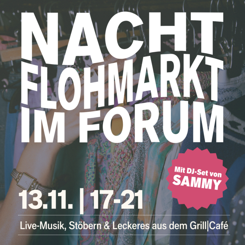 Am 13.11. verwandeln wir das FORUM in einen großen Nachtflohmarkt und laden euch von 17 bis 21 Uhr zum Stöbern ein. DJ Sammy sorgt an dem Abend für die passende Musik .